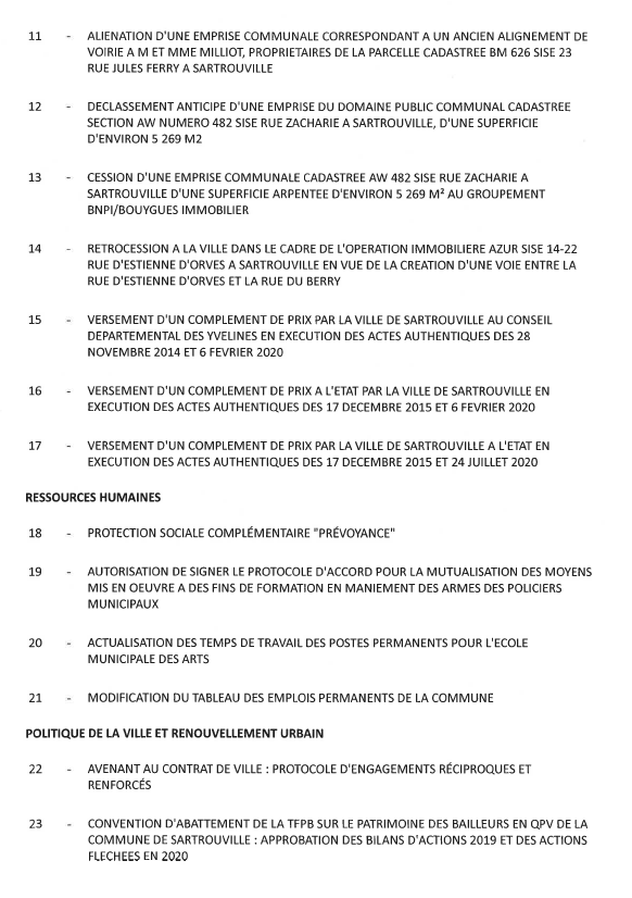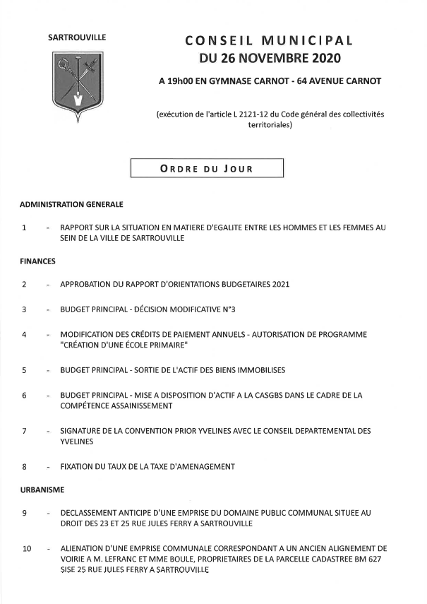 Le prochain conseil de Sartrouville se tient jeudi prochain, 26 novembre.