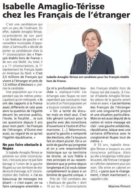 Je remercie celles et ceux qui ont suivi notre campagne pour représenter les Français de l’étranger (merci Le Parisien et 78 actu de l’avoir joliment relayée). Ce fut une campagne courte et intense sur des sujets qui nous concernent toutes et tous : qu’est-ce que le pacte républicain, qu’est-ce l’égalité des citoyens, a fortiori quand on vit hors du territoire national ?