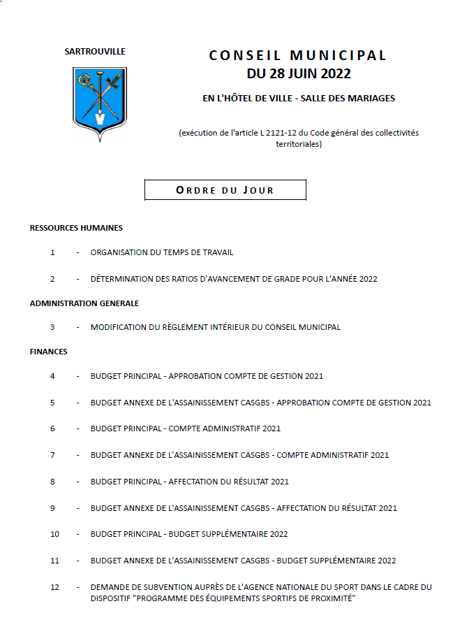 Prochain conseil municipal de Sartrouville : rdv mardi 28 juin, à la Mairie, à 18h00