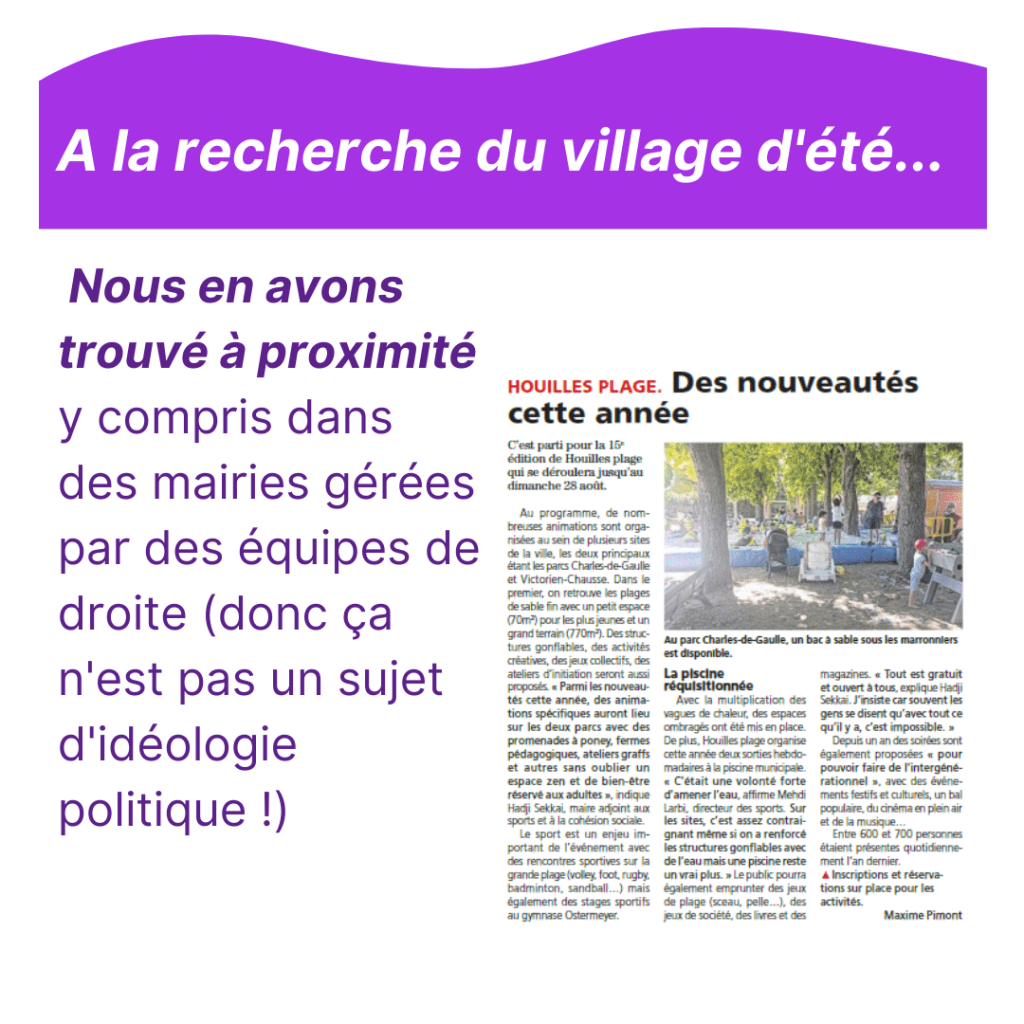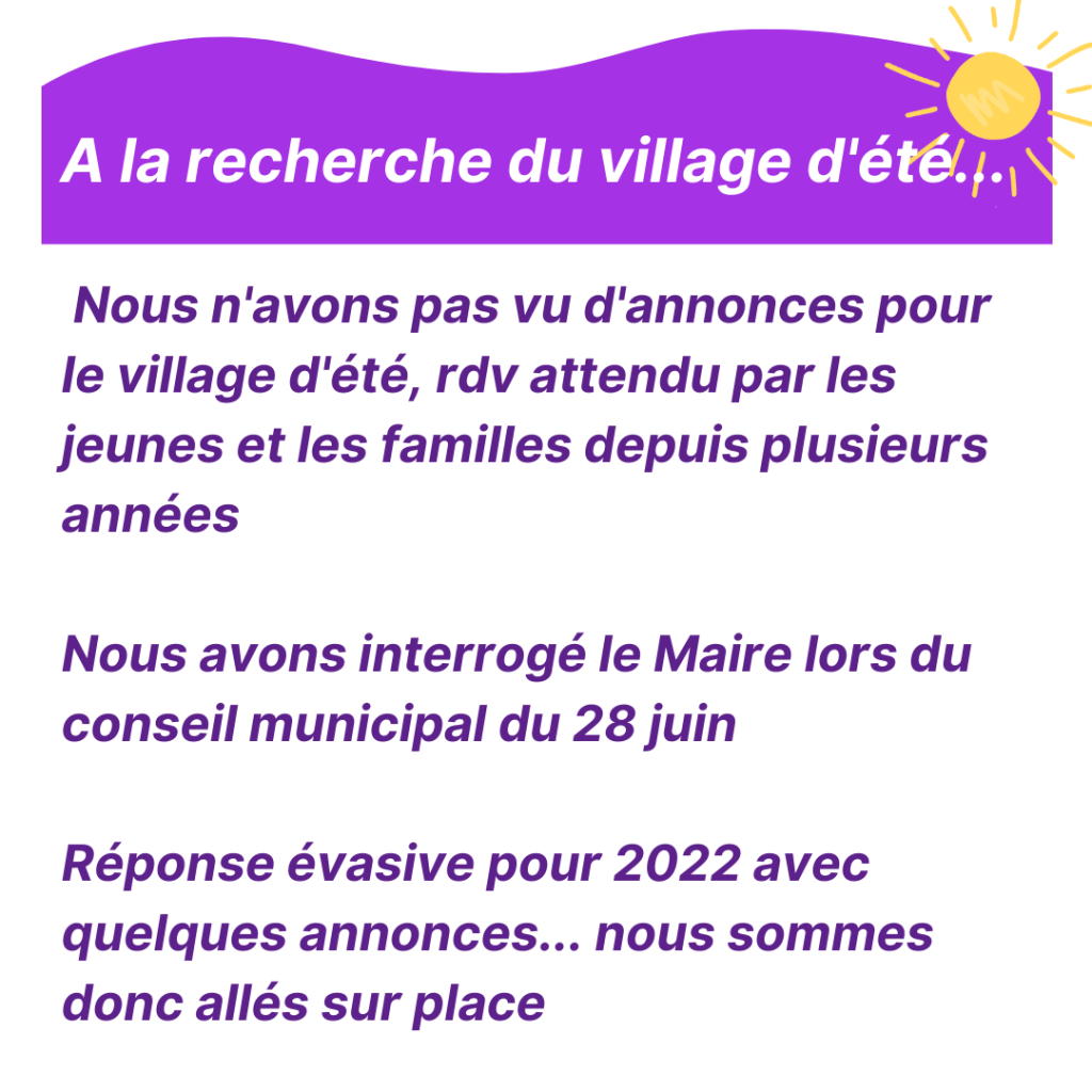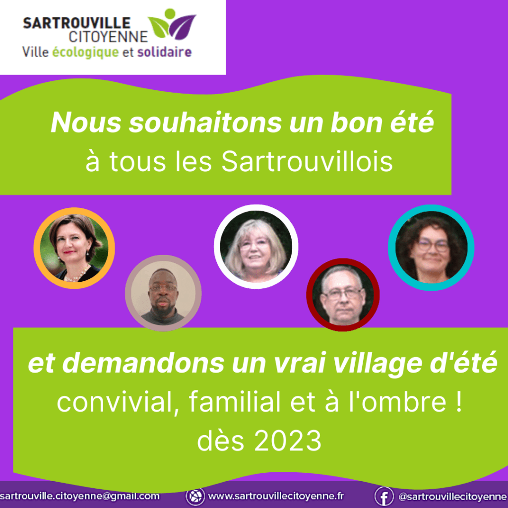 Pour cette 5e tribune vidéo sur la page FB de la ville, nous revenons sur la nécessité d’un village d’été à Sartrouville. Retrouvez-nous à Gagarine pour en parler directement sur le terrain en 3 mn chrono et n’hésitez pas à nous contacter