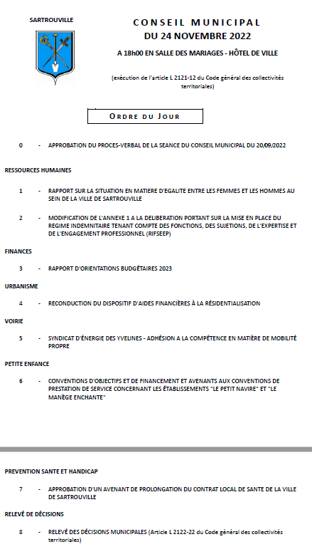 Prochain conseil municipal : 24 novembre