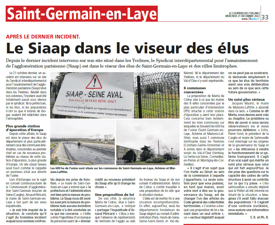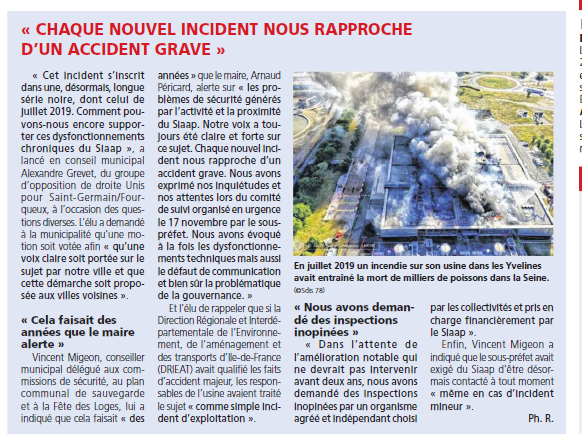 La presse revient sur le nouveau dysfonctionnement du SIAAP et les déclarations des différents maires en conseil communautaire : il a fallu que nous soulevions cette question à nouveau et que nous insistions pour qu’elle soit débattue (à relire dans le compte rendu officiel).