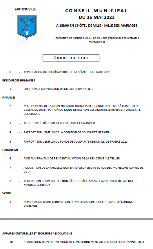 Ce conseil, qui se tiendra exceptionnellement un mardi traitera essentiellement d’une réorganisation des services, d’une réforme comptable, de l’acquisition de plusieurs parcelles de terrain (Morillons/Berteaux) et d’une subvention au COS Judo.