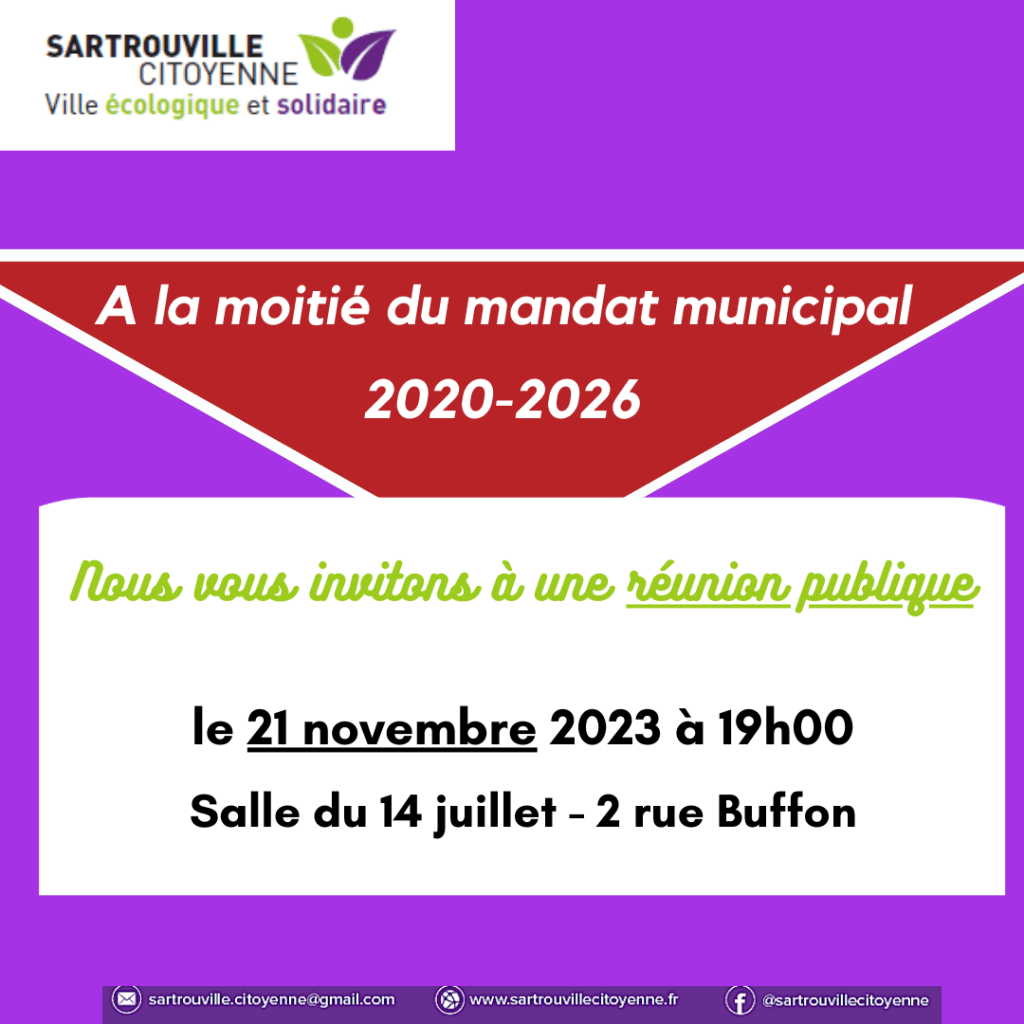 Nous avons échangé depuis le début de ce mandat municipal, avons été en contact etc. C’est la raison pour laquelle nous vous proposons de participer à la réunion de mi-mandat que nous organisons le 21 novembre, à 19h00, salle du 14 juillet.