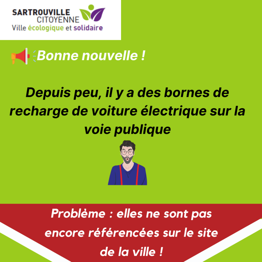 Bonne nouvelle, depuis peu il y a des bornes de recharge de voiture électrique sur la voie publique ! Problème : elles ne sont pas encore référencées sur le site de la ville !