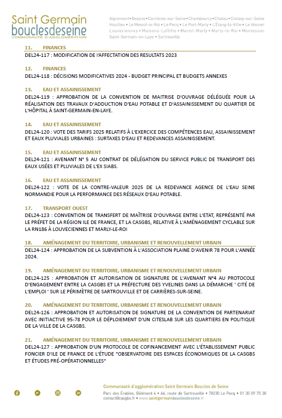 Le prochain conseil communautaire se tiendra le jeudi 12 décembre 2024 à 19h00 , dans les locaux de la CASGBS au Pecq (Parc des Erables – 66 route de Sartrouville – Bât 4, 3ème étage – porte de gauche).