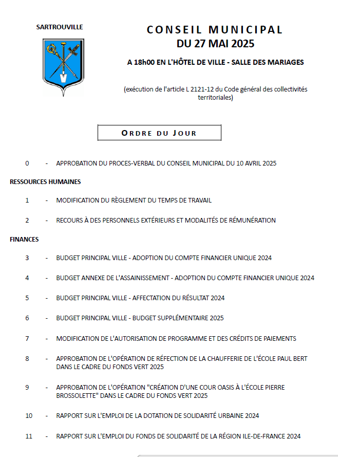 - le budget (comptes 2024 et ajustement du budget 2025), des travaux aux écoles Paul Bert et Pierre Brossolette.