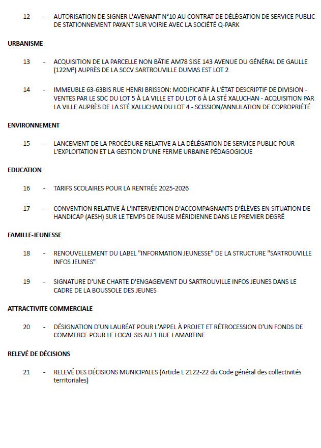 - quelques sujets pour le fonctionnement des écoles mais aussi le renouvellement du label « information jeunesse » de la structure « Sartrouville infos jeunes »