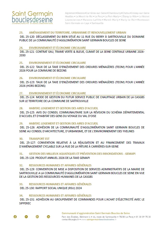 • environnement : les taux de taxe d’enlèvement des ordures ménagères et le futur service public de chauffage urbain par réseau de chaleur géothermale à Sartrouville