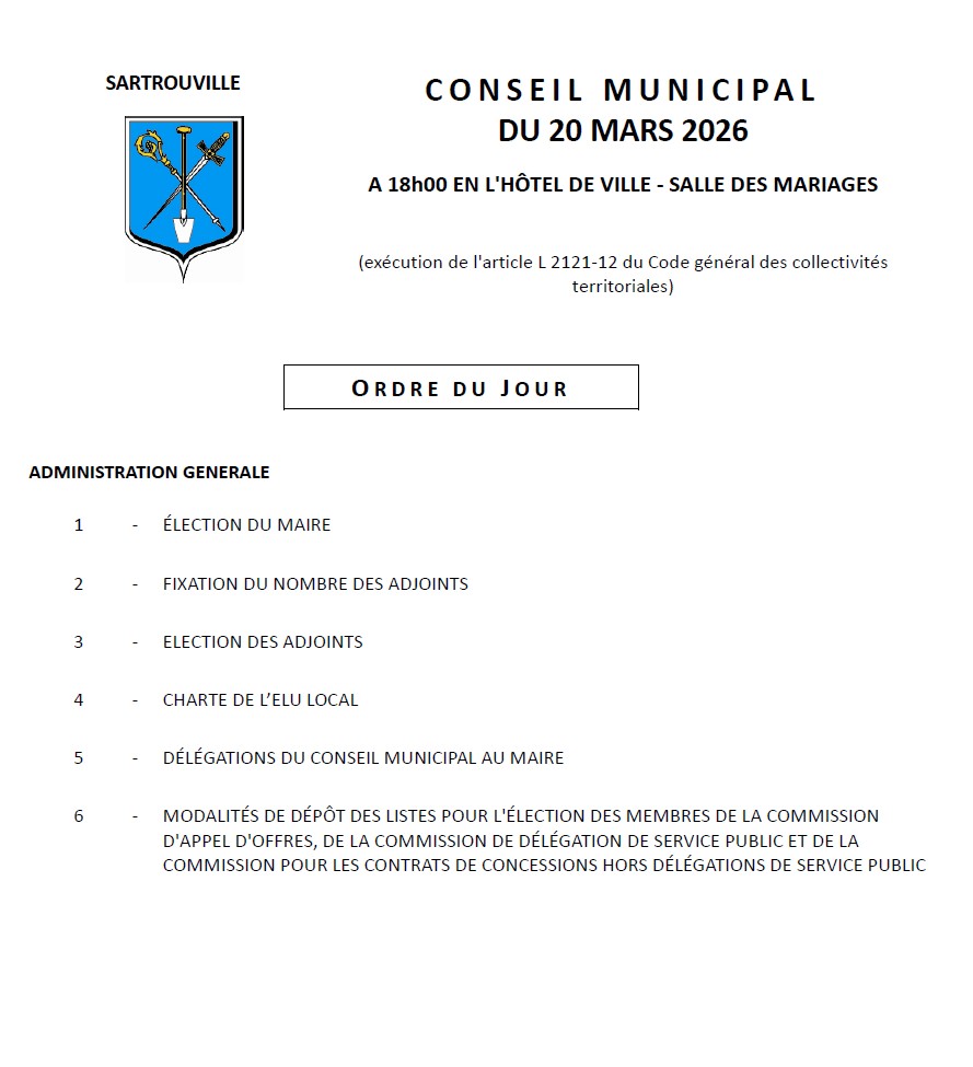 Premier conseil d’installation à Sartrouville : seulement 6 points à l’ordre du jour avant le conseil du 27 mars.