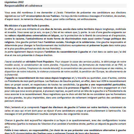 Législatives 2022 – Responsabilité et cohérence