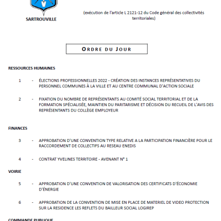 Prochain conseil municipal de Sartrouville : rdv le 19 mai, à la Mairie, à 18h00