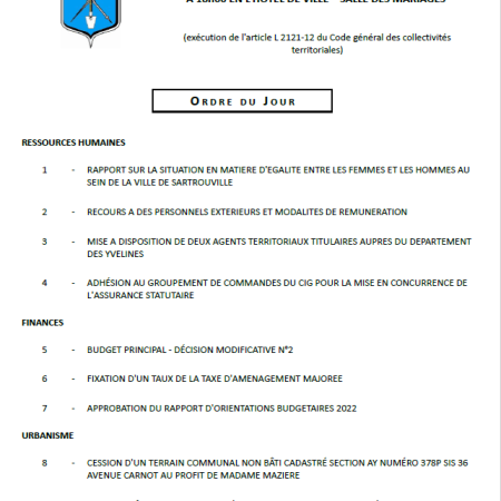 Prochain Conseil municipal de Sartrouville le 16 décembre 2021, Mairie, 18h00