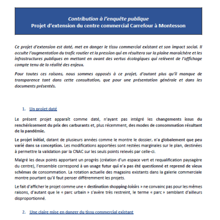 Extension du centre commercial Carrefour de Montesson : pour nous, c’est non et on vous explique pourquoi