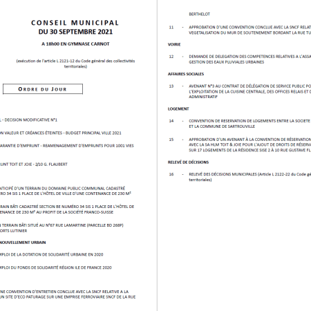 Prochain Conseil municipal de Sartrouville le 30 septembre 2021