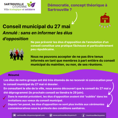 Conseil municipal du 27 mai : le Maire annule sans prévenir l’opposition