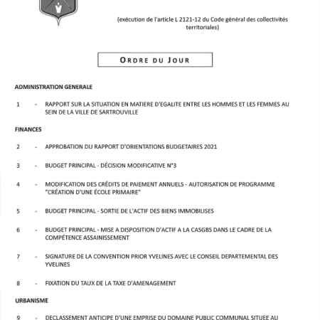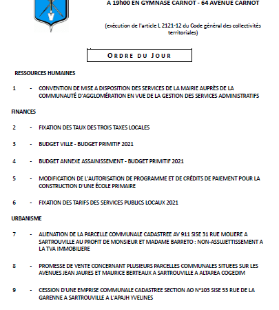 Prochain Conseil municipal de Sartrouville le 17 décembre