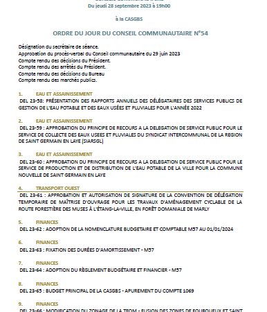 Retour rapide sur le conseil communautaire du 28 septembre 2023